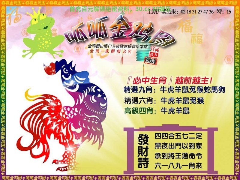 303期:九肖『虎鸡马羊牛鼠狗猴』开兔15准
